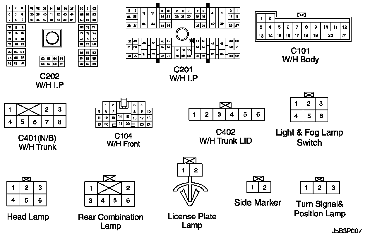 Lamp (License Plate, Side Marker and Front/Rear Position) Circuit: Notchback