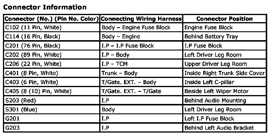 CONNECTOR INFORMATION