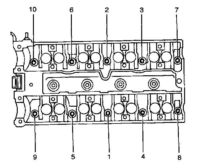 Tighten the cylinder head bolts gradually and in the sequence shown.