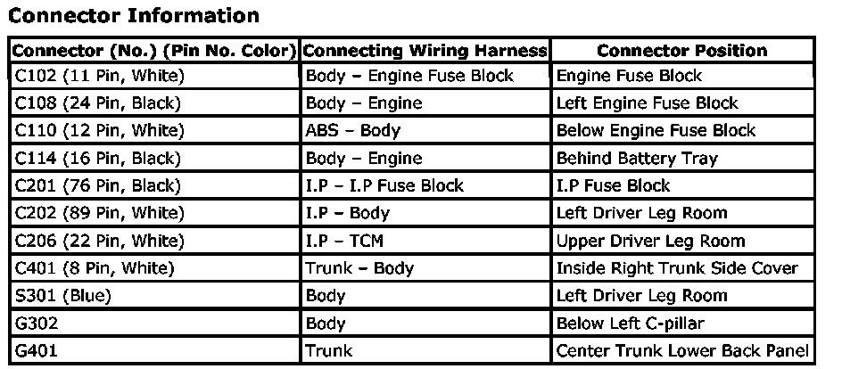 CONNECTOR IDENTIFICATION SYMBOL AND PIN NUMBER POSITION