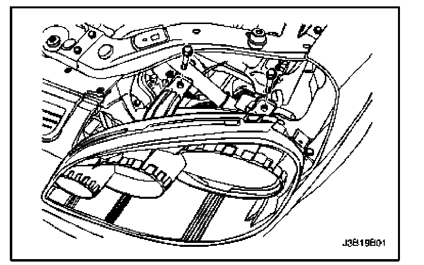 2. Remove the headlamp mounting bolts and nut.