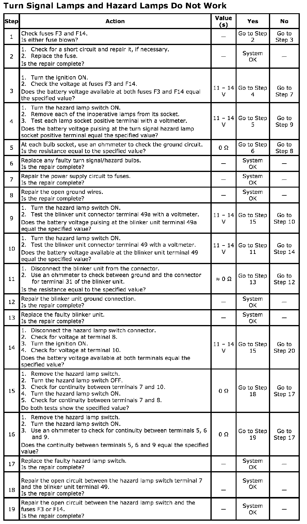 Turn Signal Lamps and Hazard Lamps Do Not Work
