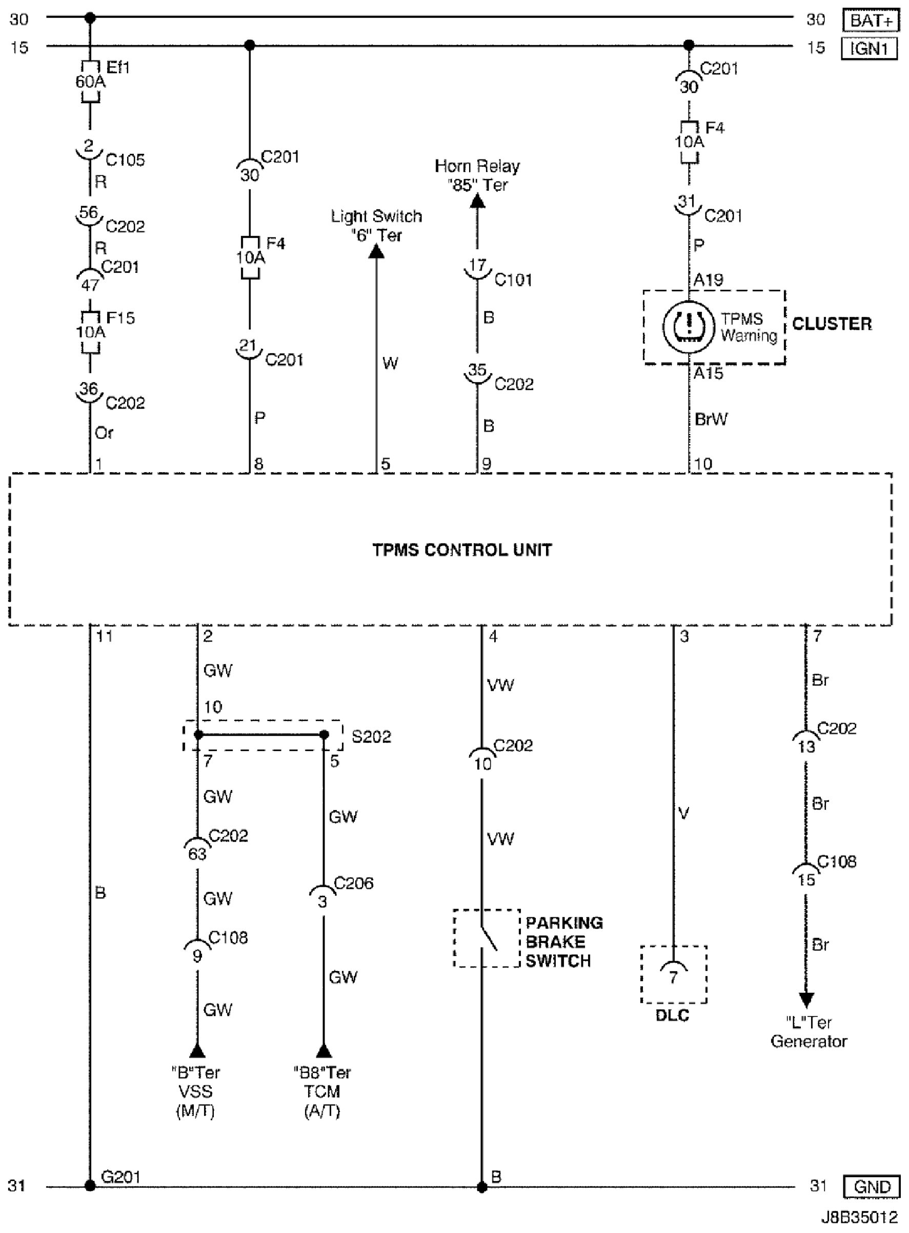 TPMS (Tire Pressure Monitoring System) Control Unit Circuit Wiring Diagram: