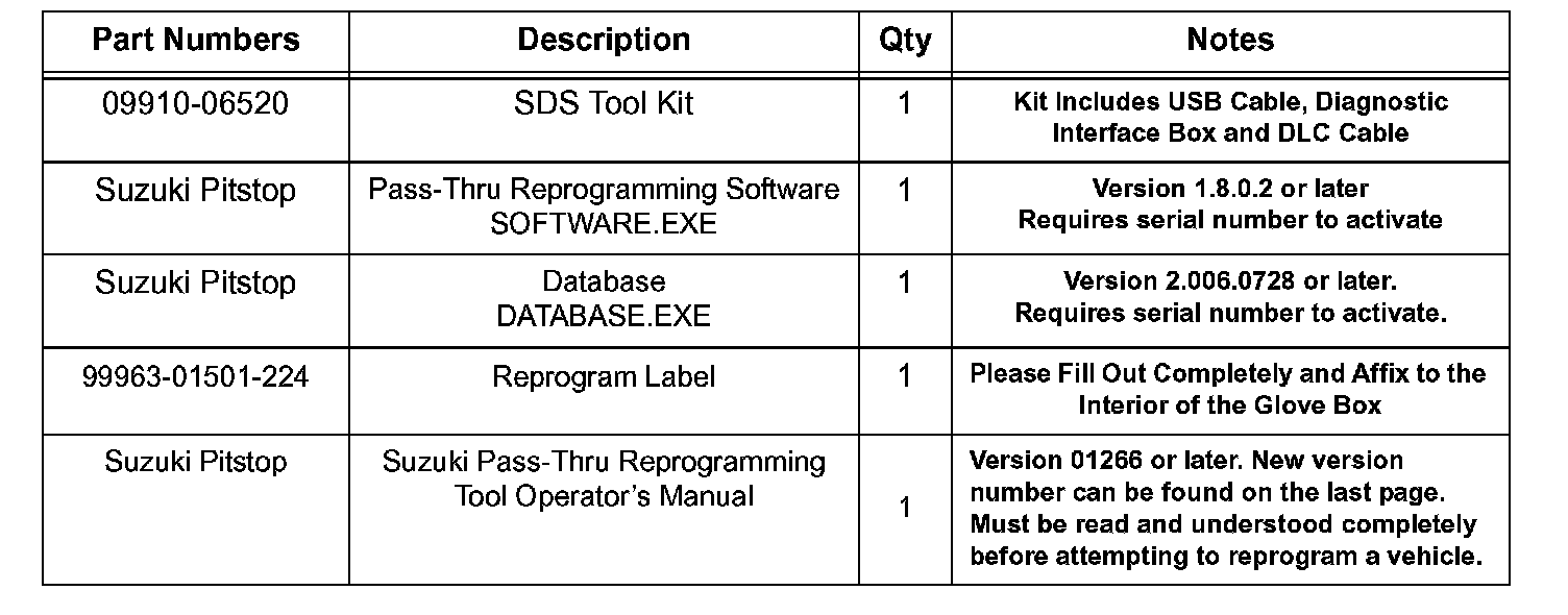 3. Following the procedure outlined in the Suzuki Pass-Thru Reprogramming Tool Operator's Manual, download and install the Pass-Thru Reprogramming Software "SOFTWARE.EXE" (if it is not already installed).
