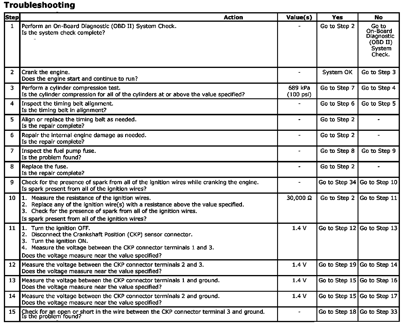 The number(s) below refer to step(s) on the diagnostic table.