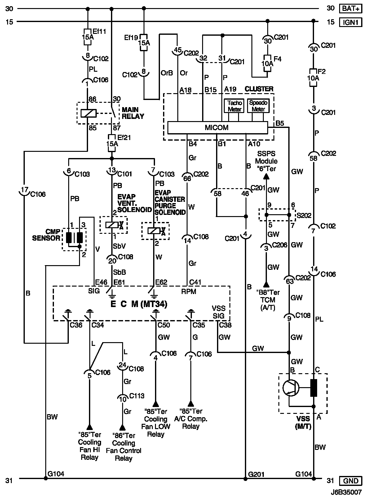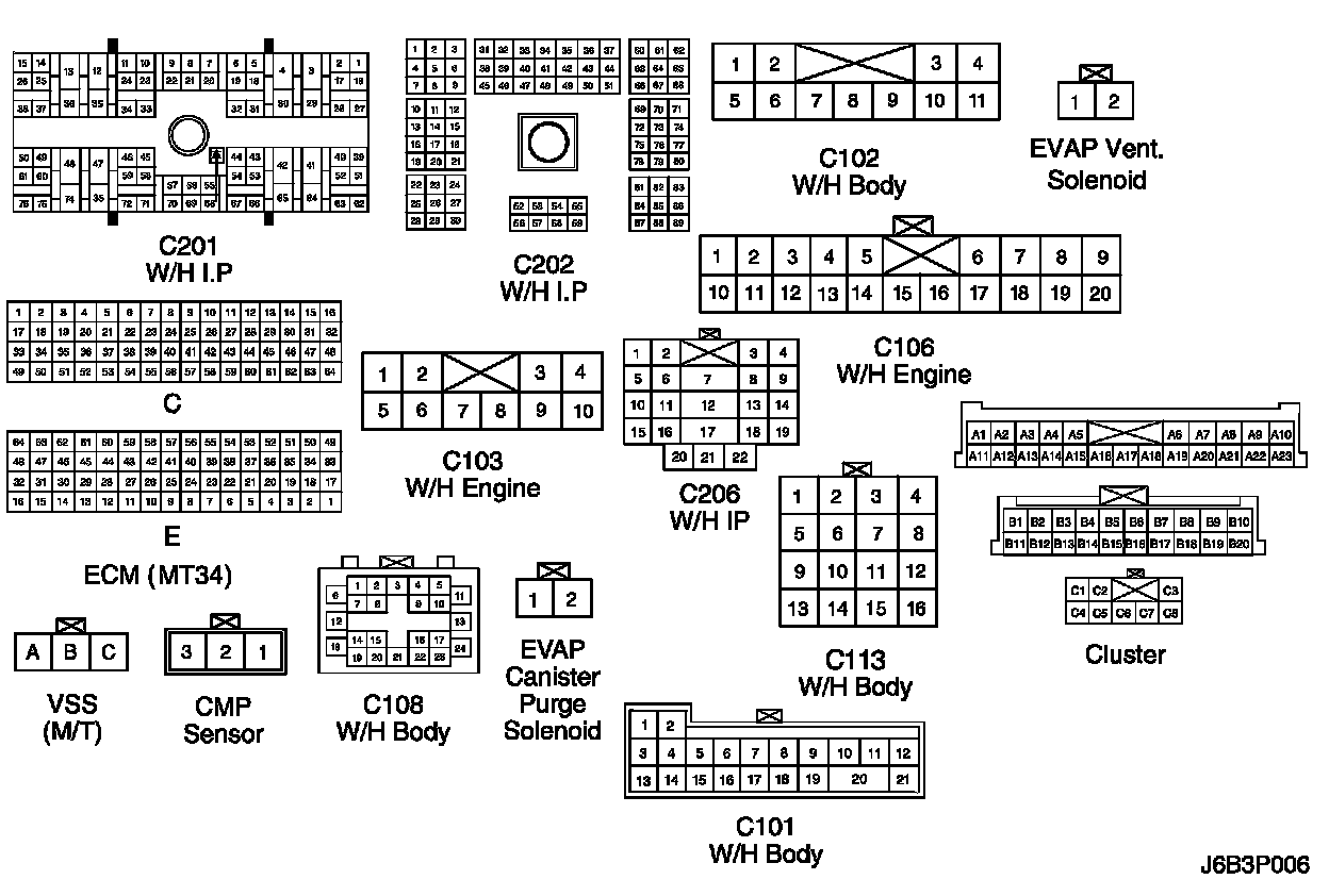 EVAP Canister Purge Solenoid, EVAP Vent. Solenoid, CMP Sensor, Cluster and VSS Circuit (For STATION WAGON Model):