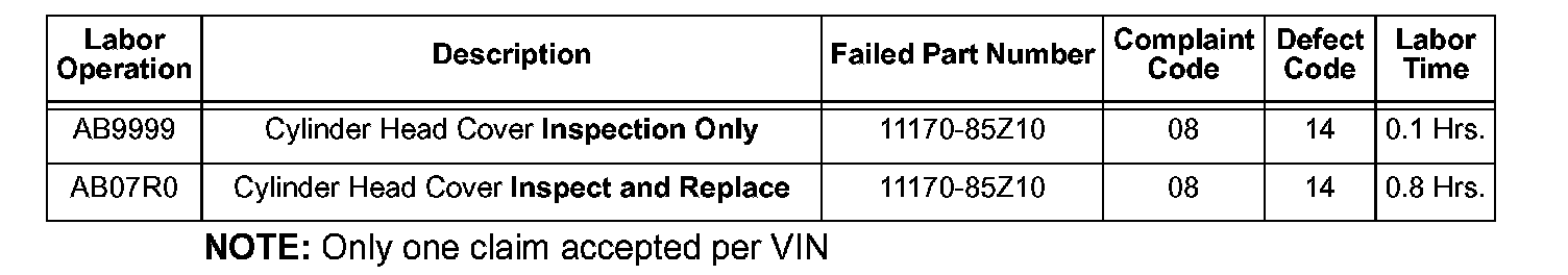^ When no yellow paint is present, proceed with the 0.1 hr. inspection described in this TSB. If the PCV restrictor is missing or loose, replace the cylinder head cover. See the "Part(s) Information" in this TSB.