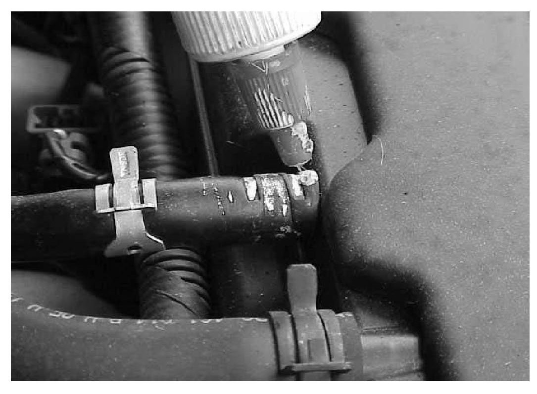 5. Slide the hose back onto the nipple. Mark the PCV hose with a yellow paint marker.