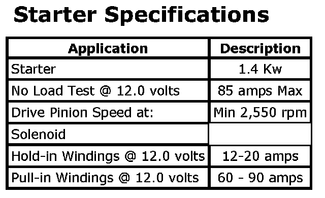 Starter Specifications: