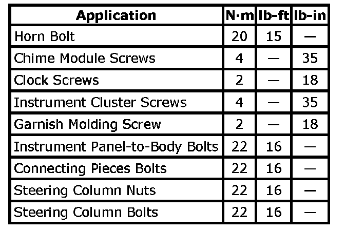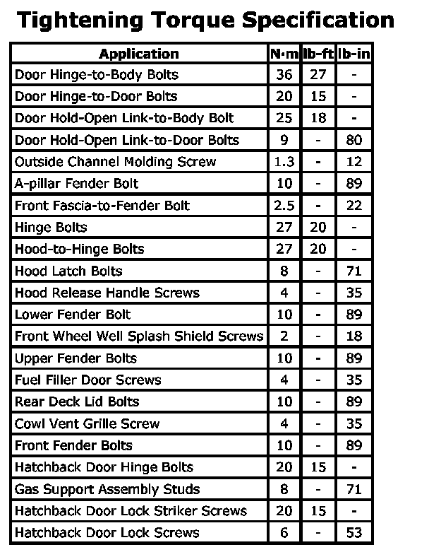 Tightening Torque Specification: