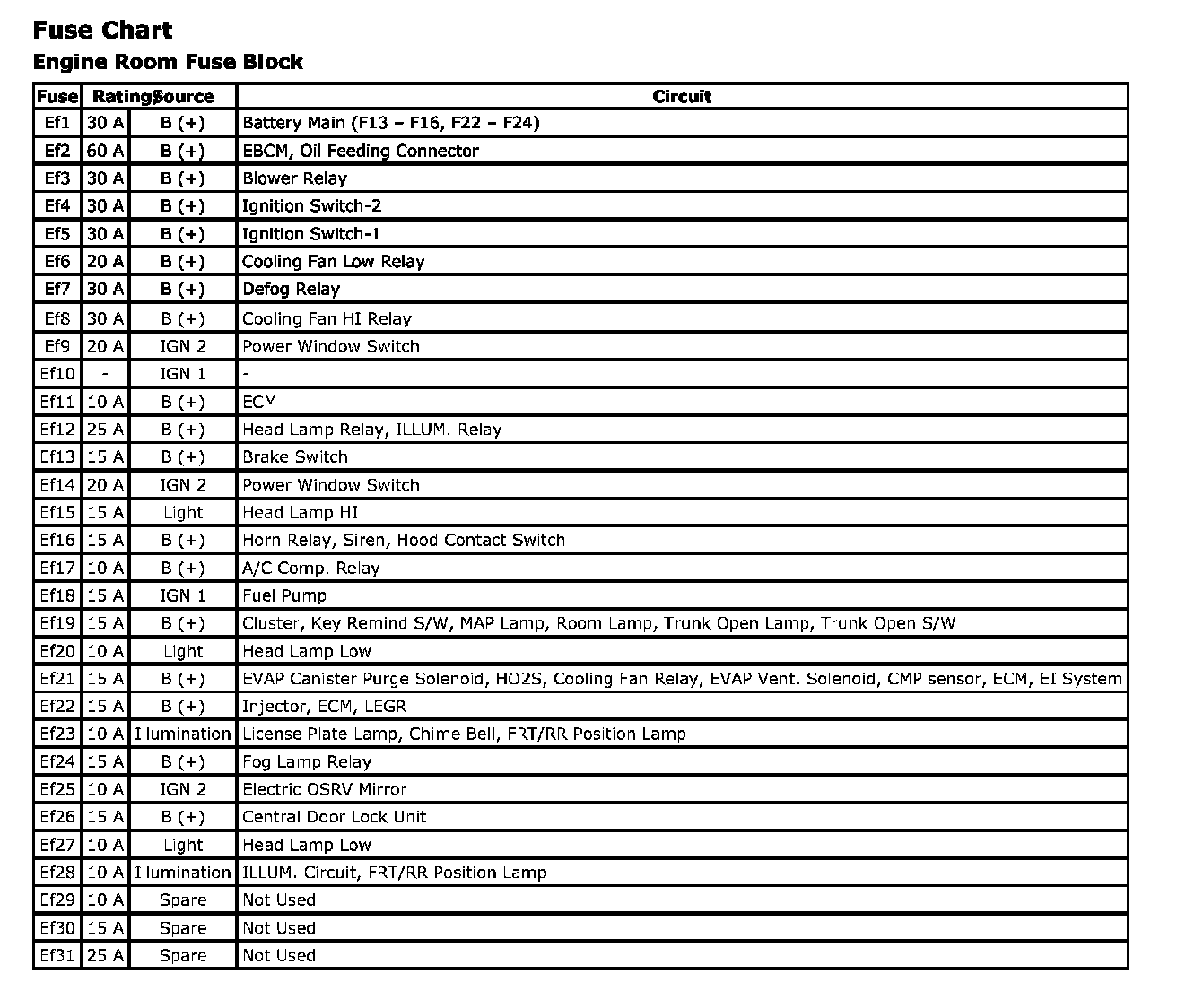 Fuse Chart - Engine Room Fuse Block: