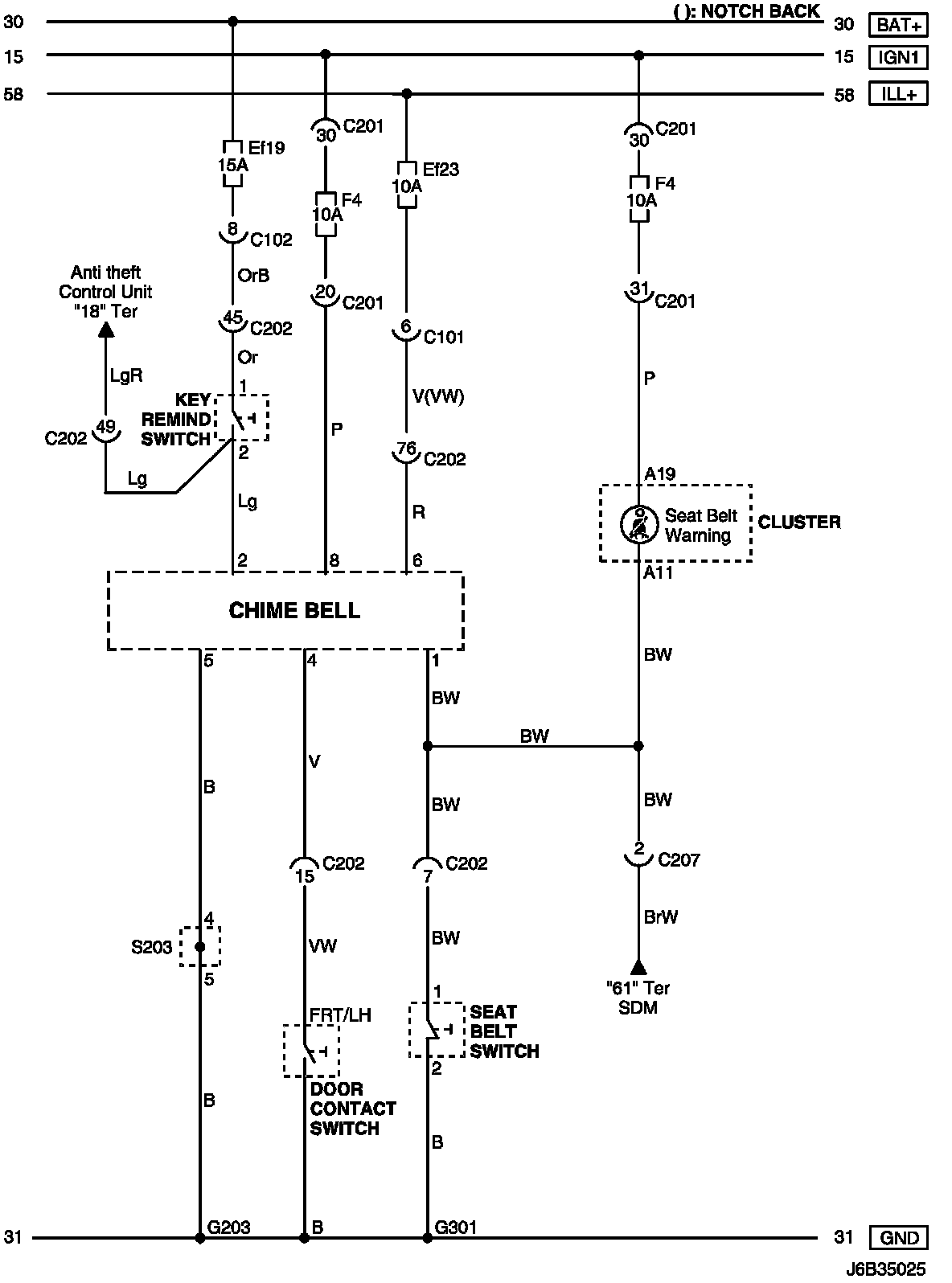 Chime Bell, Seat Belt and Key Remind Switch Circuit: