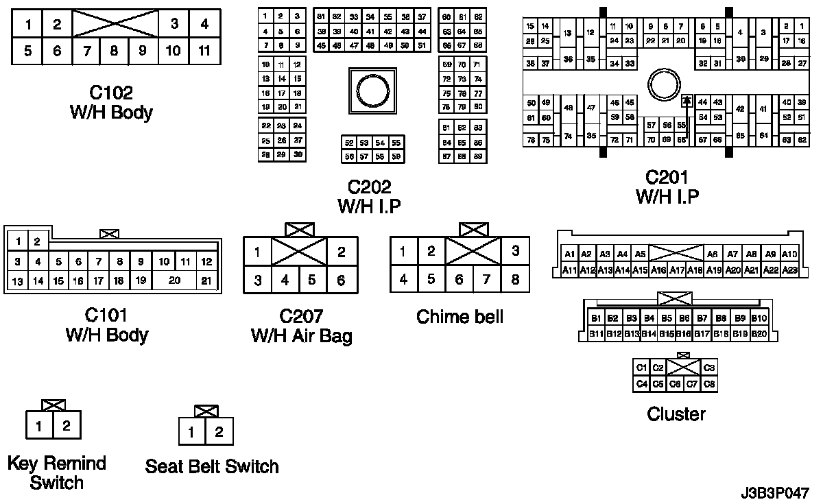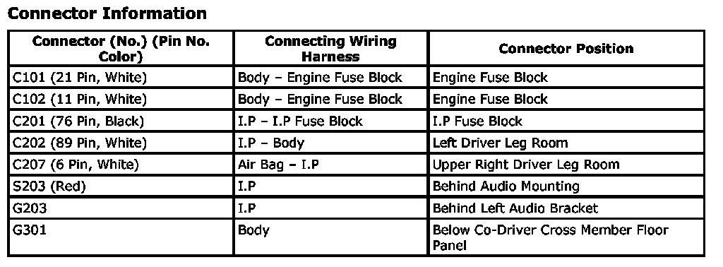 CONNECTOR IDENTIFICATION SYMBOL AND PIN NUMBER POSITION