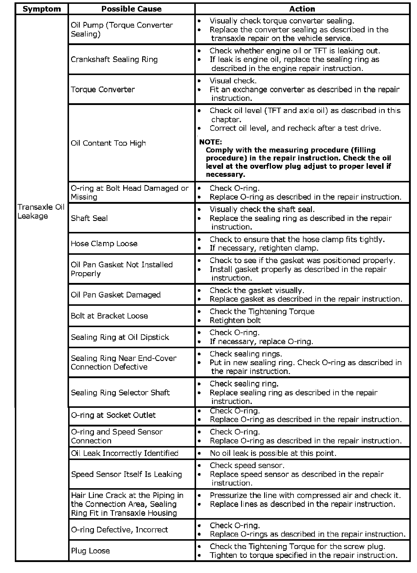 Symptom DiagnosisOil Leakage