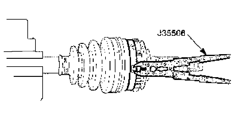 2. Spread the snap ring using the snap ring pliers J-8059 and remove the outer joint the axle shaft.