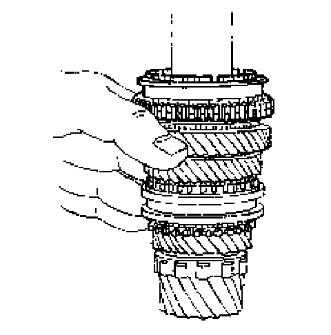 4. Remove the synchronizer hub sleeve that contains the synchronizer spring.