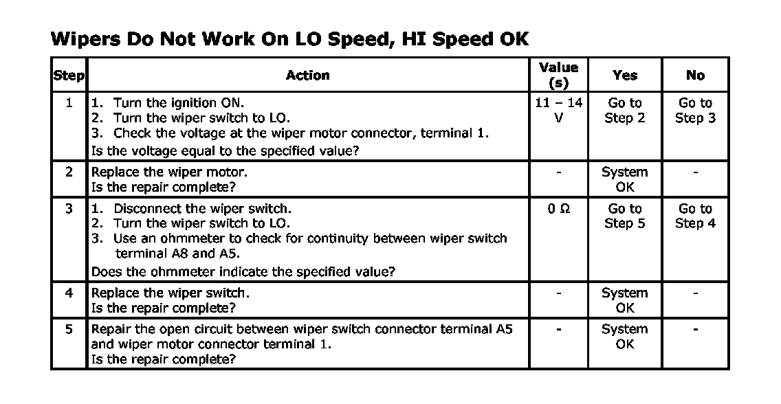 Wipers Do Not Work on LO Speed, HI Speed Ok