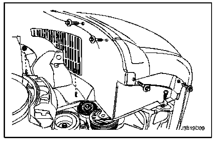 3. Remove the bolts and the screws and the front wheel well splash shield.
