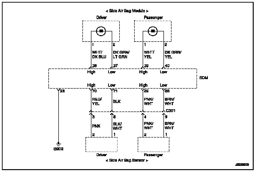 Upon passing these test ignition and deployment loop voltages are measured to ensure that they are within their normal voltage ranges. The SDM monitors the voltages at the driver low and the passenger low to detect short to ground or voltage in the deploy loops.