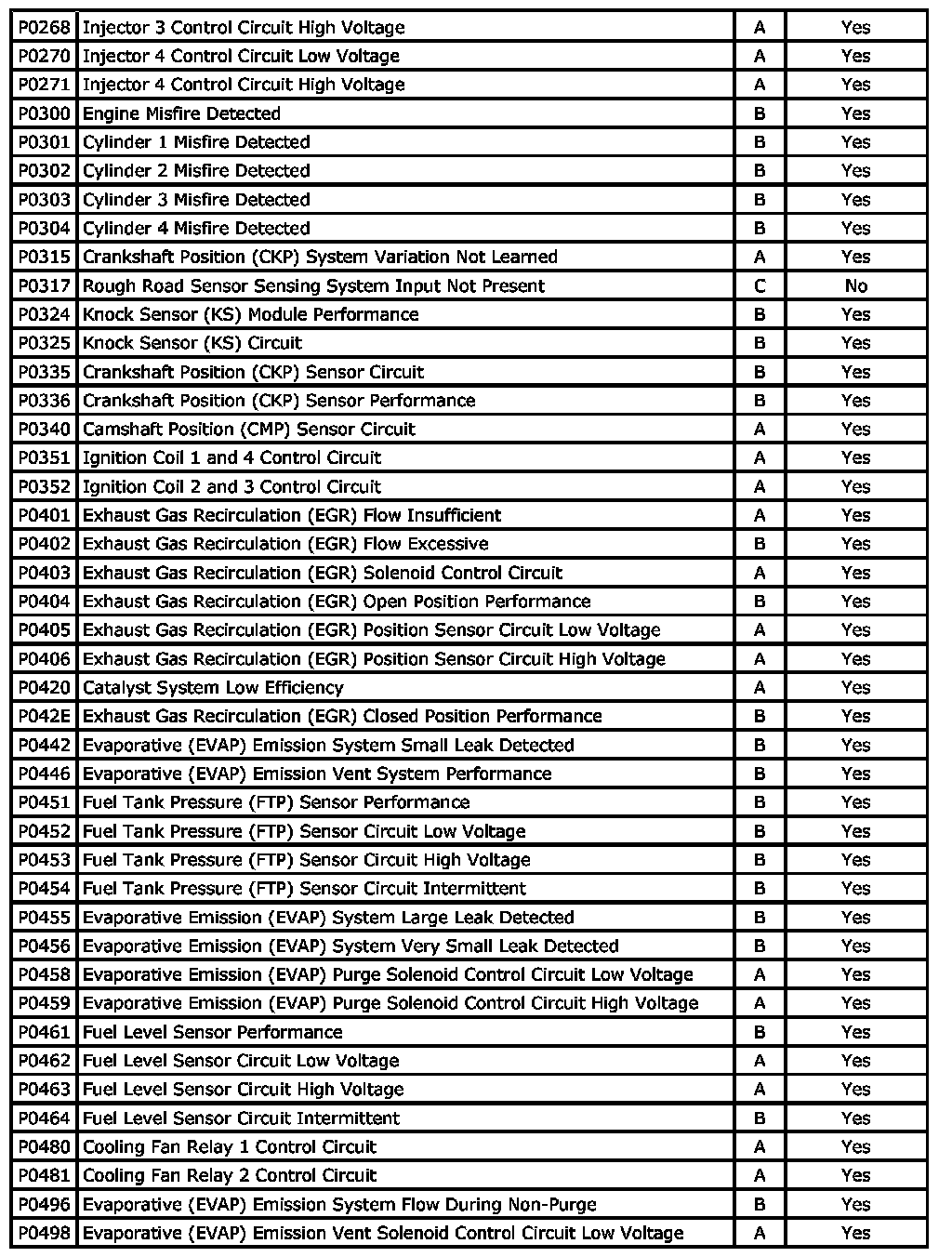P0268 - P0498: