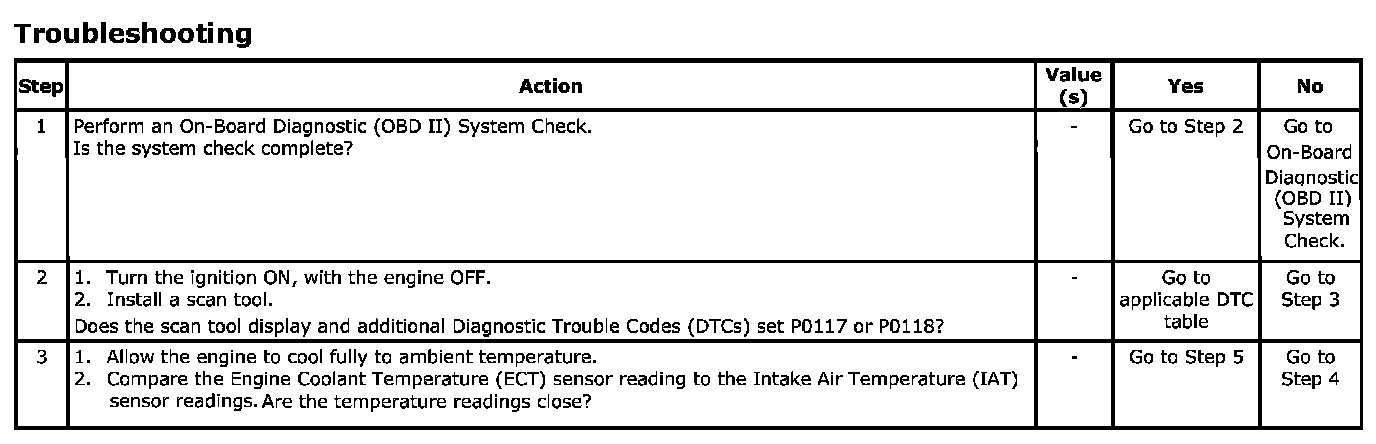 Use the Temperature vs. Resistance Values Table to evaluate the possibility of a skewed sensor. Refer to Temperature VS Resistance. Pinout Values and Diagnostic Parameters