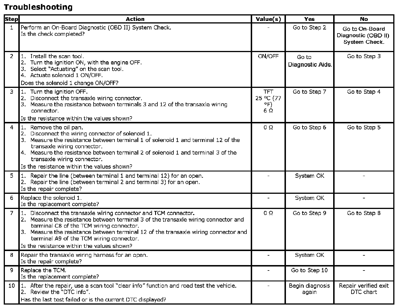 DTC P1852: Solenoid 1 Output OpenCircuit Description