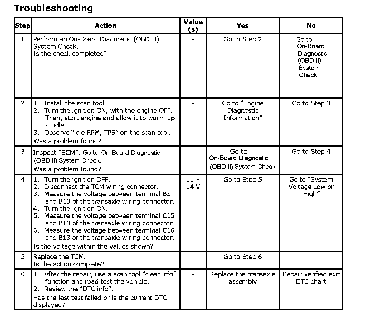 ^ The TCM will record operating conditions at the time the diagnostic fails. This information will be stored in the Failure Records buffer.