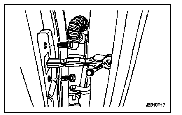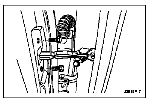 Tighten: Tighten the door hold-open link-to-body bolt to 25 Nm (18 ft. lbs.).