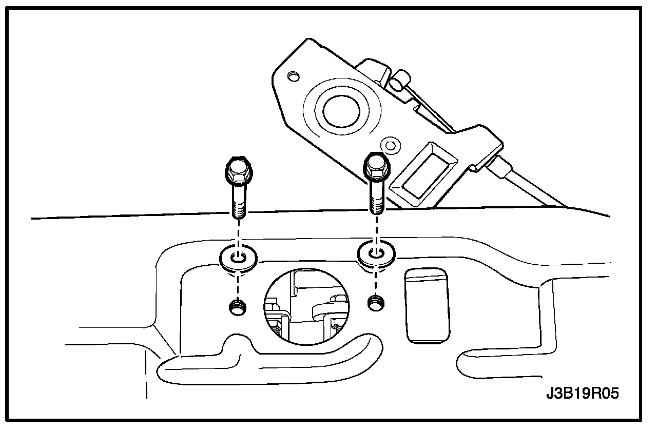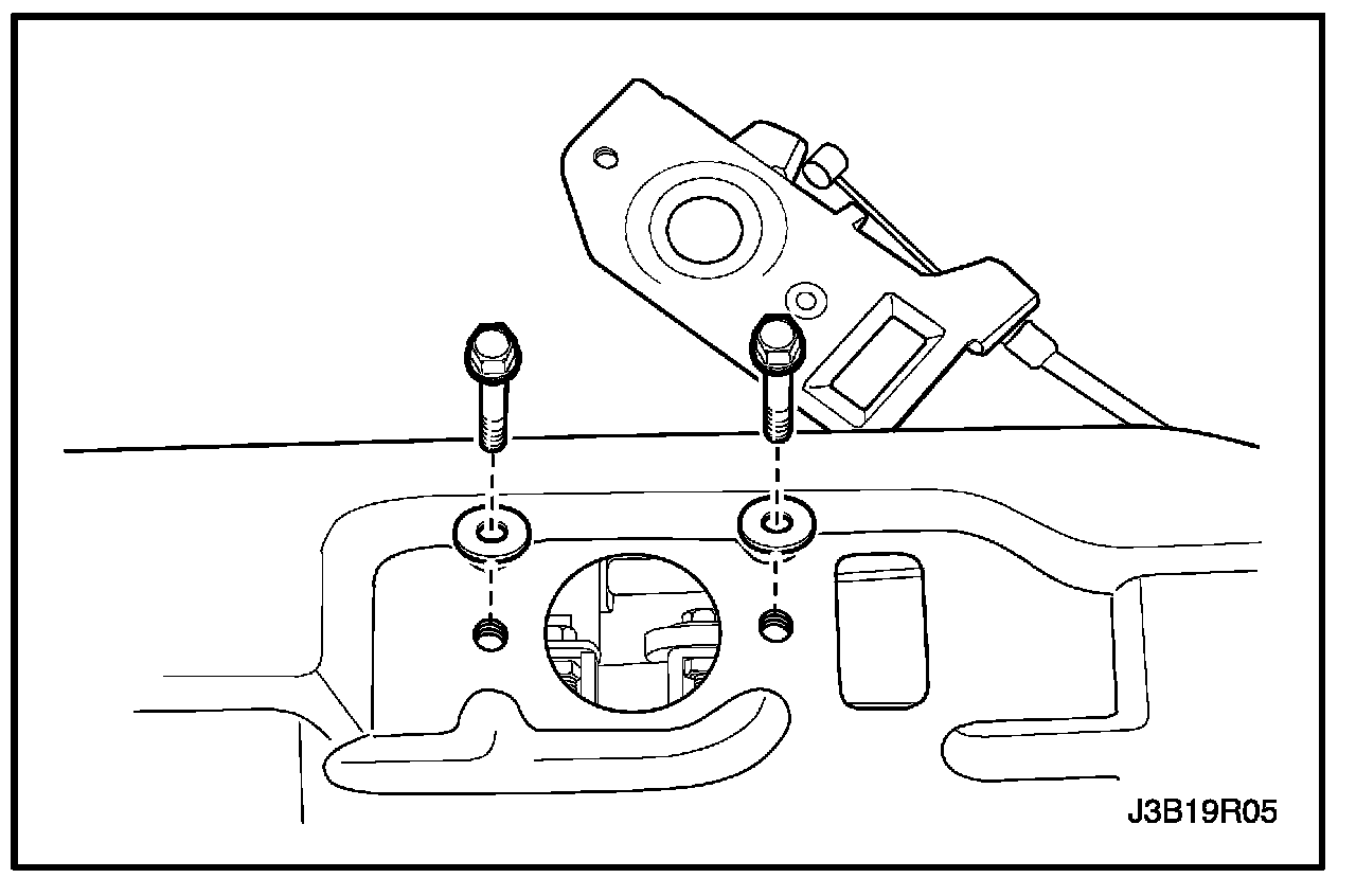 2. Install the hood latch with the bolts.