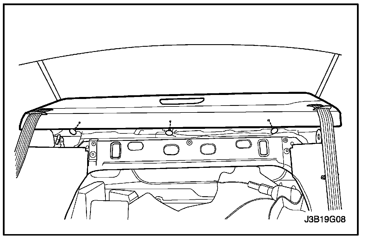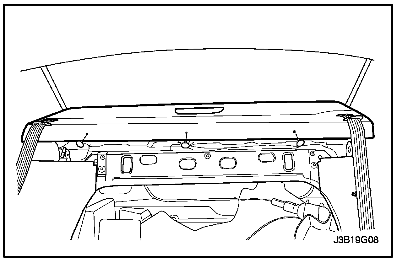 5. Remove the plastic retaining clips and the deck lid sill plate cover.