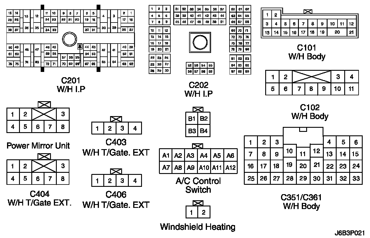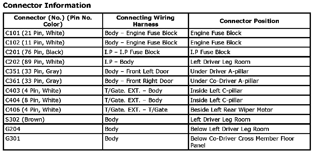 CONNECTOR IDENTIFICATION SYMBOL AND PIN NUMBER POSITION