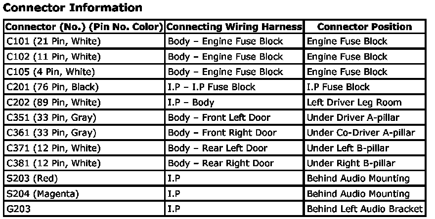 CONNECTOR INFORMATION