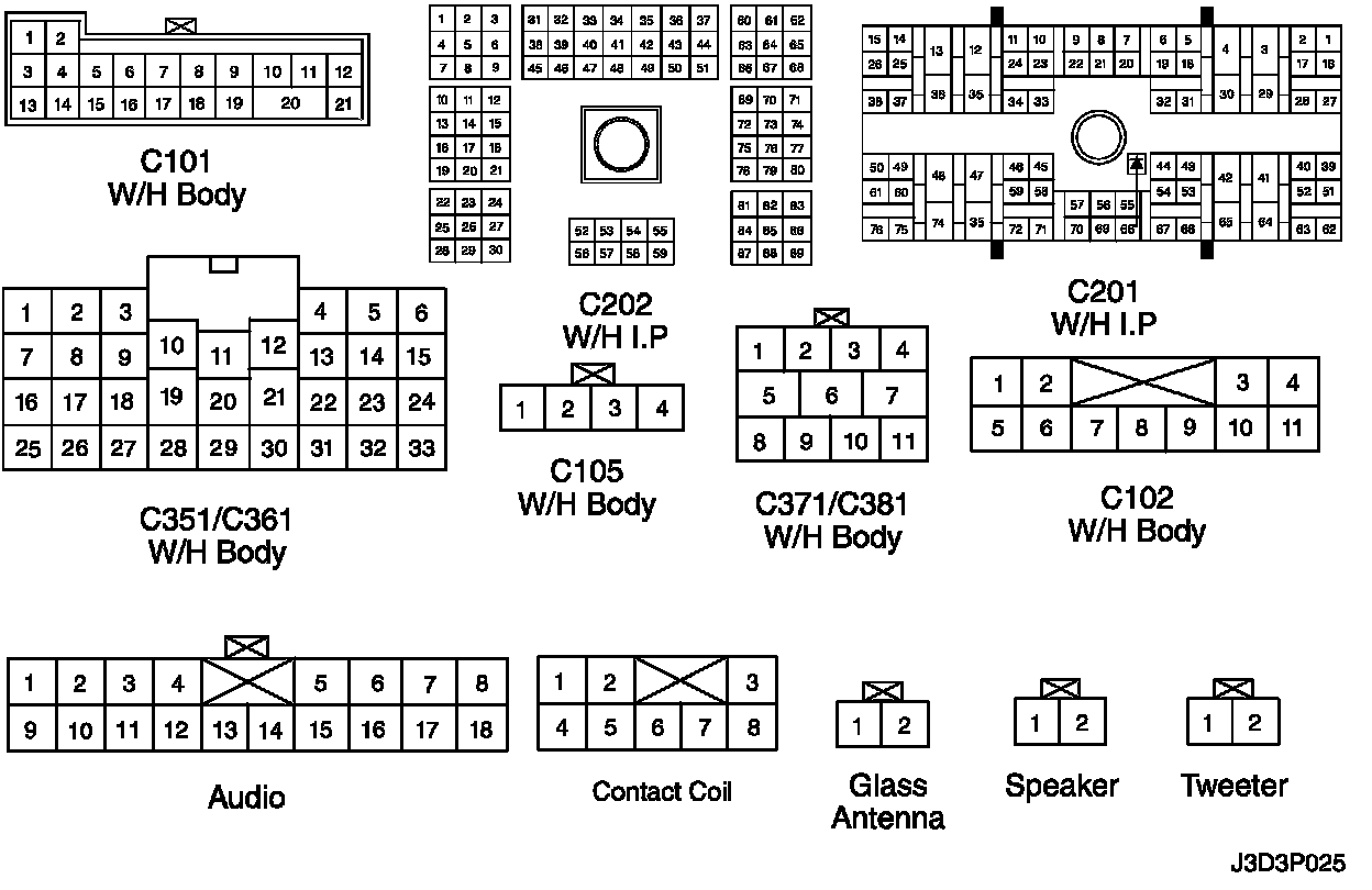 CONNECTOR IDENTIFICATION SYMBOL AND PIN NUMBER POSITION