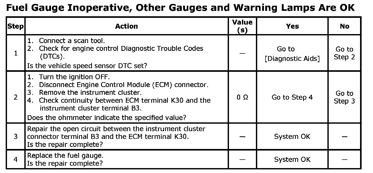 Fuel Gauge: Testing and Inspection