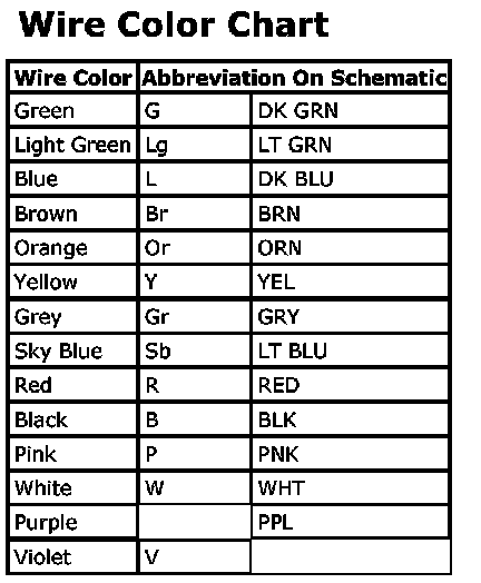 Wire Color Chart: