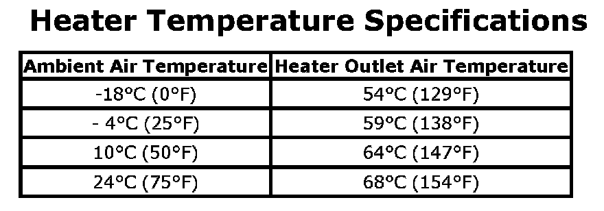 Heater Temperature Specifications: