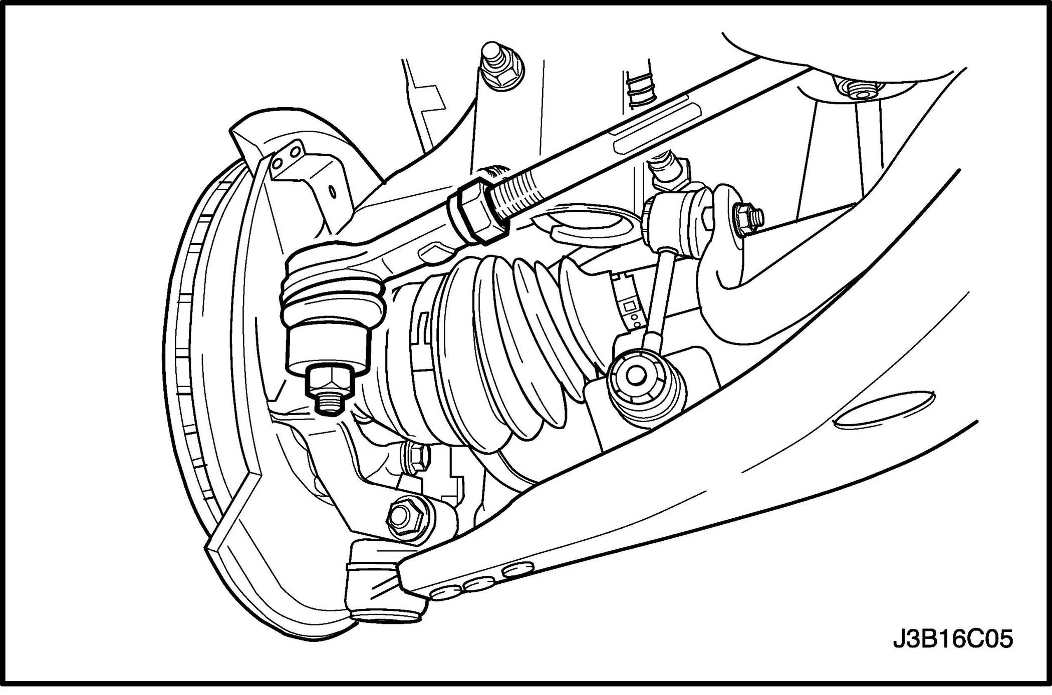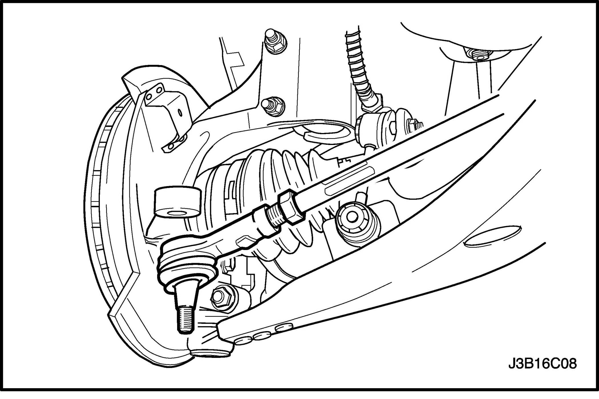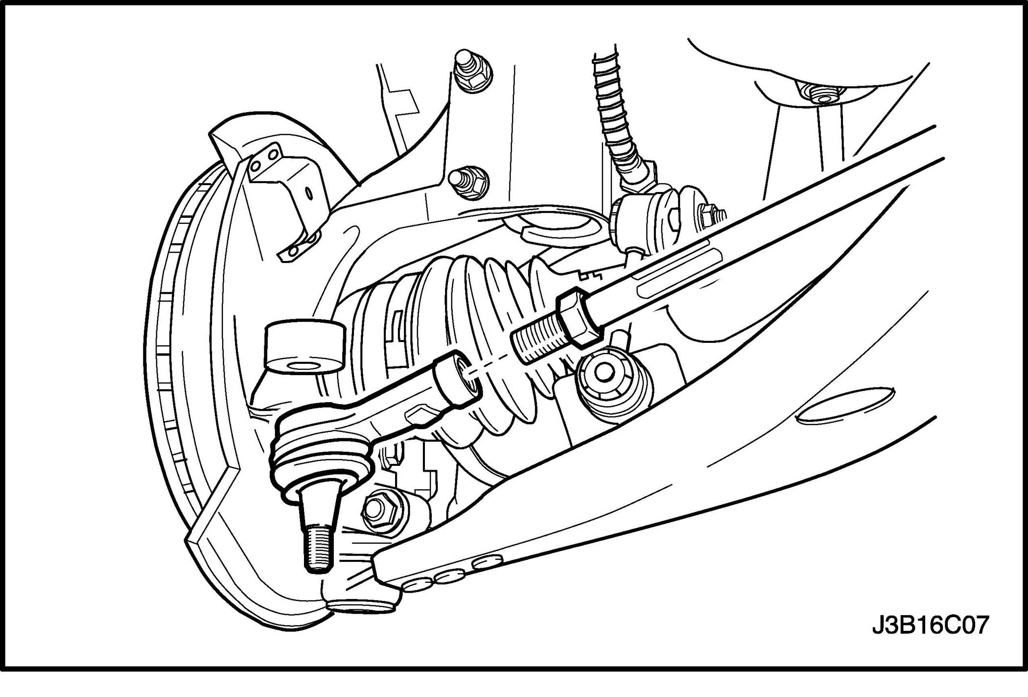 Tighten the outer tie rod adjusting nut to 64 Nm (47 ft. lbs.).