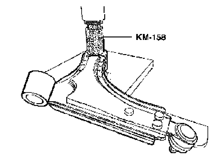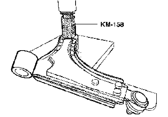 1. Press the control arm rear damping bushing into the control arm using a press and the remover/installer KM-158.