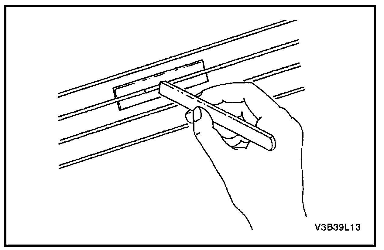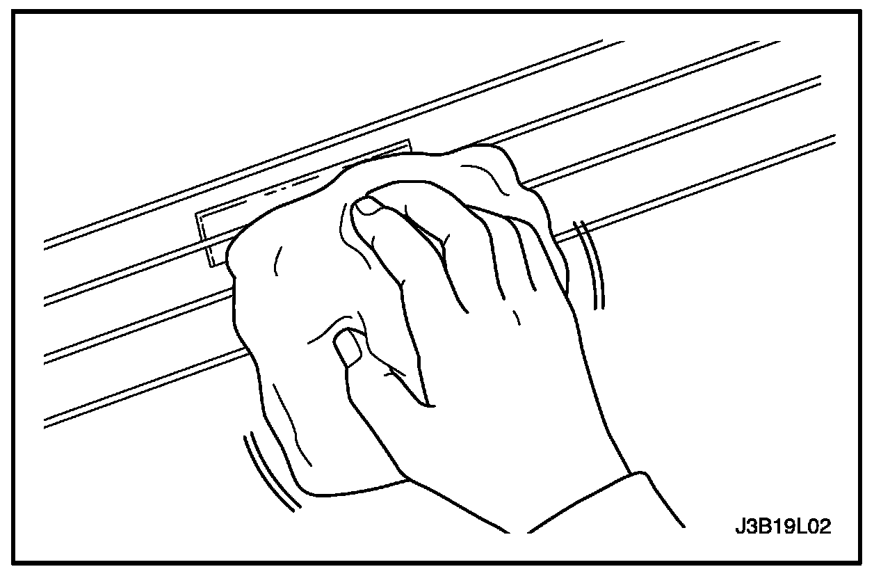 5. Buff the grid lines that are to be repaired with steel wool. Wipe the lines clean using a cloth dampened with alcohol. Buff and clean about 6 mm (0.25 in.) beyond each side of the break in the grid line.