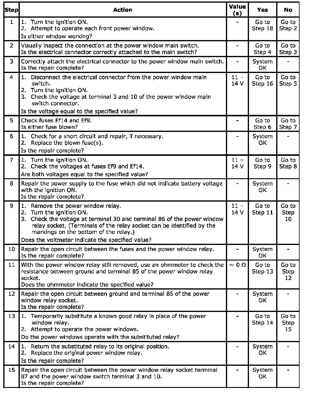 System with Front and Rear Power Windows, One or Both Front Windows Are Inoperative