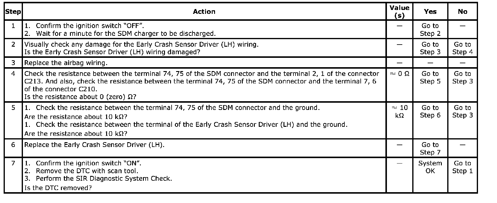 - The Early Crash Sensor Driver (LH) wiring is shorted to battery wiring.