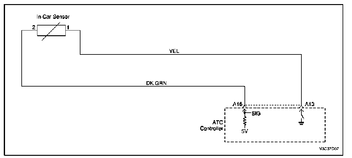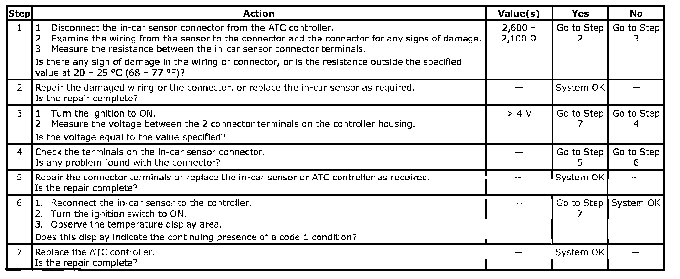 This code will set if the output of the in-car sensor indicates a probable short circuit or an open in the sensor or the associated wiring harness or a malfunction of the ATC controller.