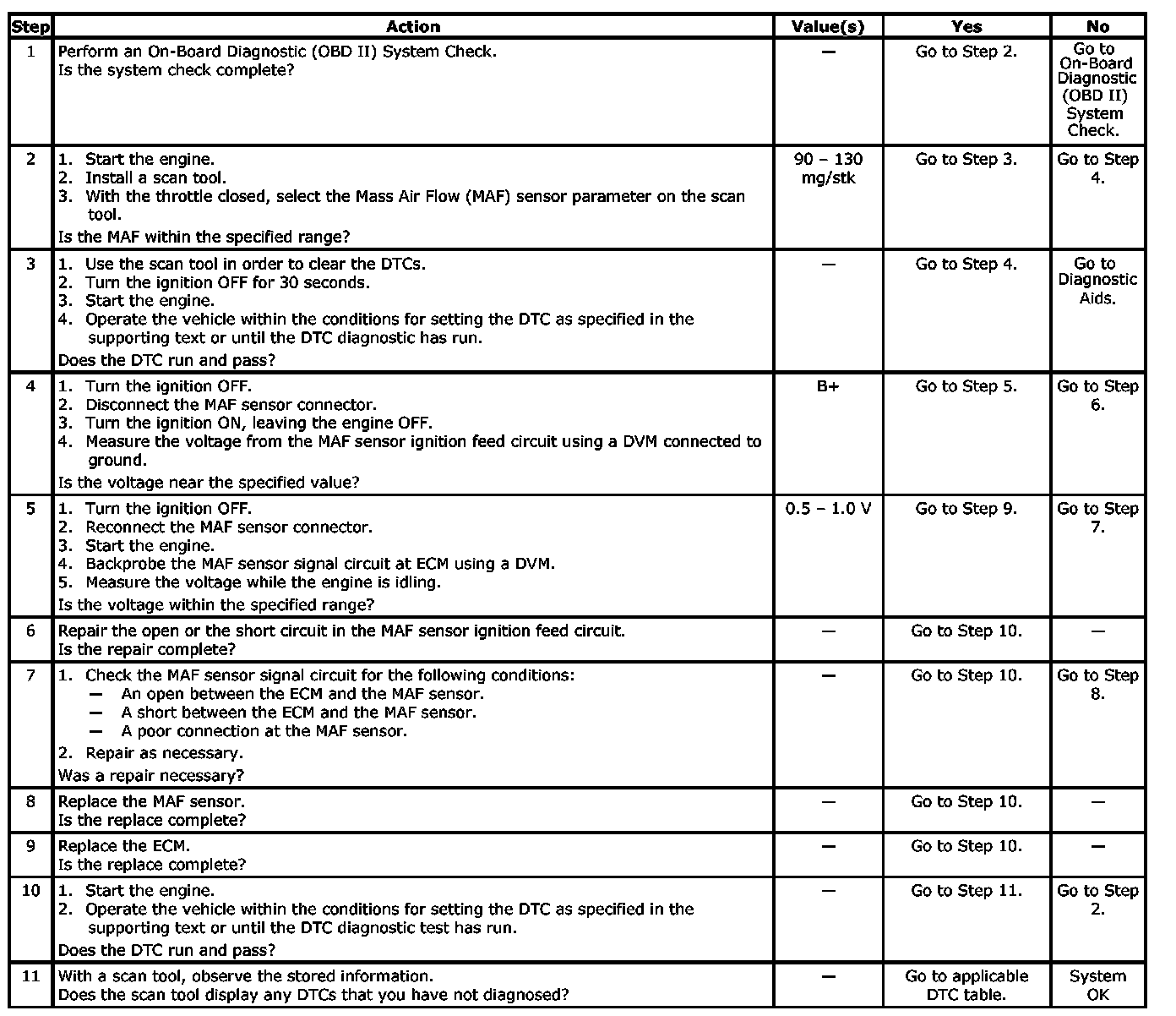 - MAF voltage is lower than 0.024 V.