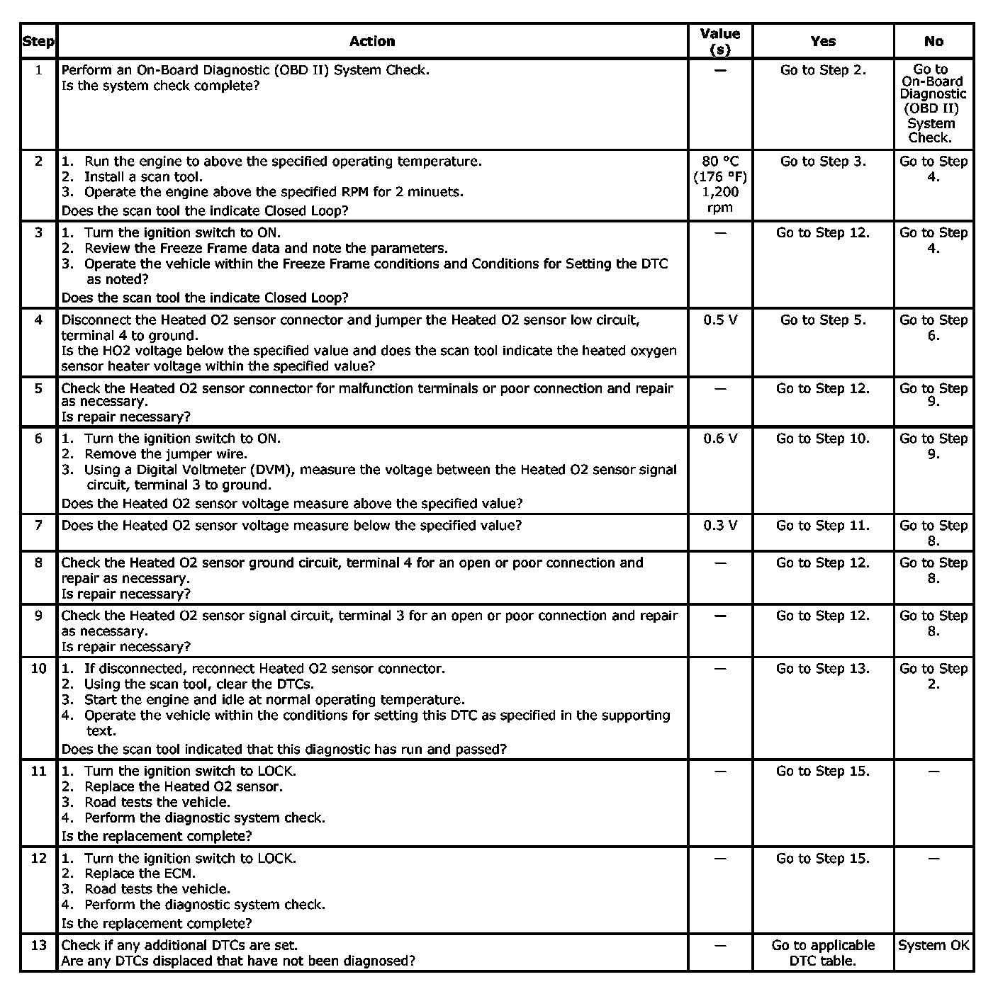 Normal scan tool voltage varies between 0.15 - 8.5 mV while in Closed Loop. If DTC P0160 is intermittent, refer to Intermittents. Intermittents