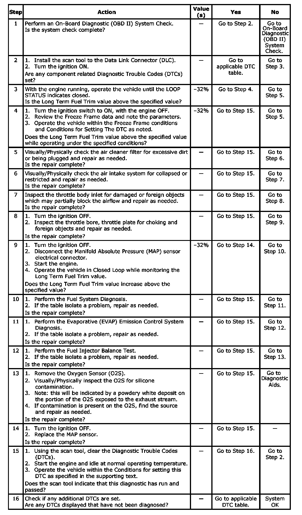 - No fuel system, TP, ECT, IAT, MAF, CMP, Misfire, CKP, MAP, ignition coil or injector faults exist.