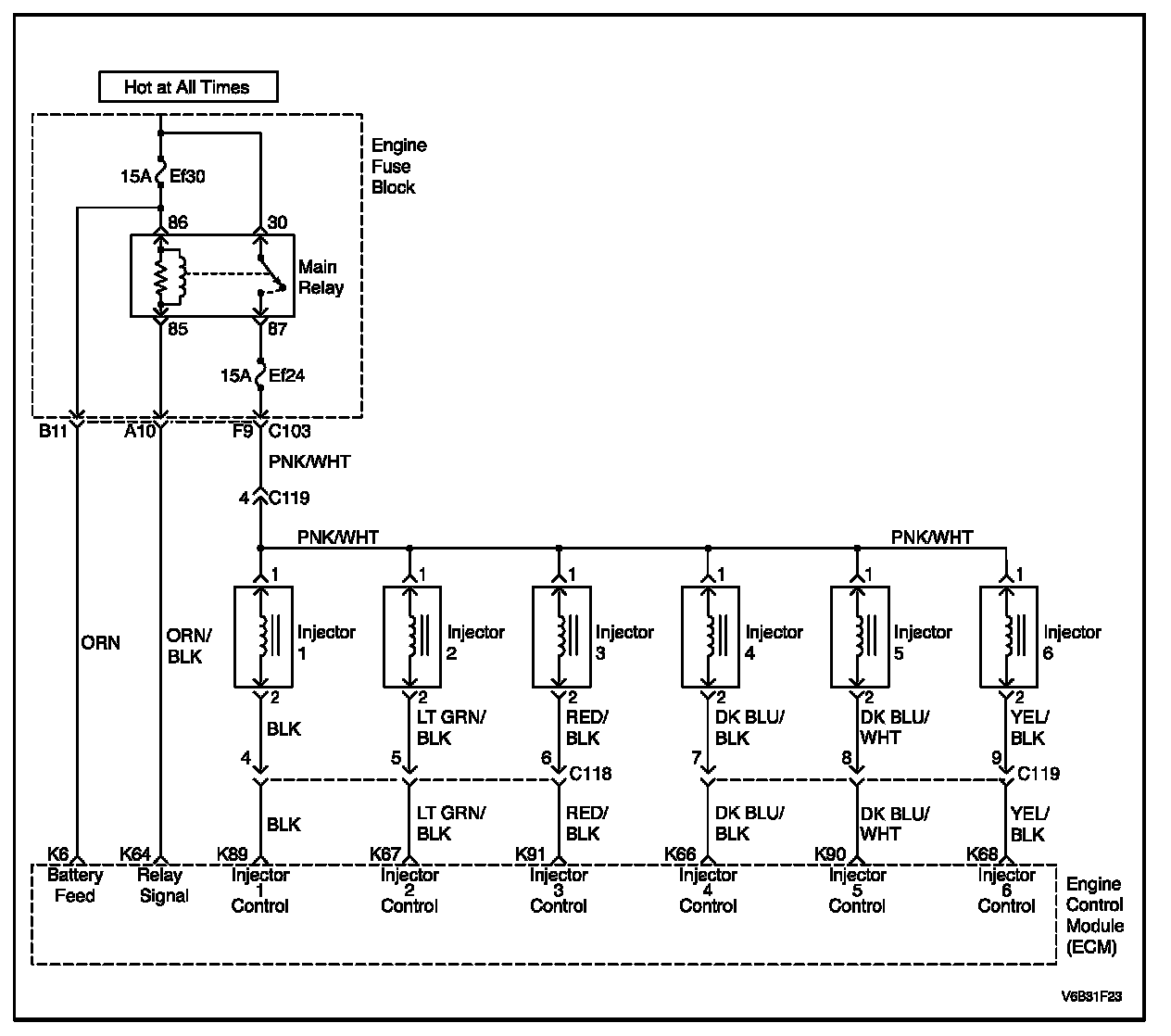 DTC P0262: Injector 1 Control Circuit High VoltageWiring Diagram:
