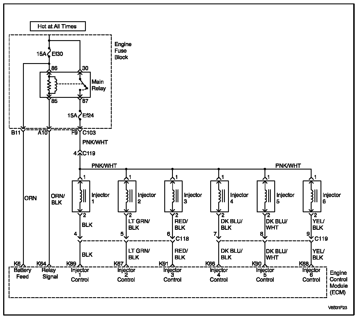 DTC P0276: Injector 6 Control Circuit Low VoltageWiring Diagram: