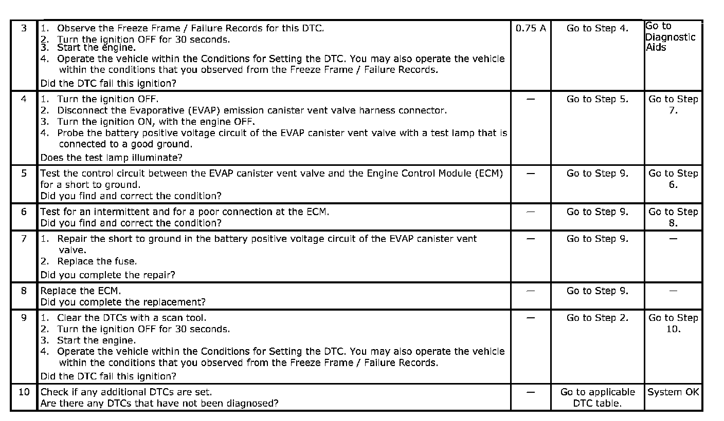 2. This step tests the battery positive voltage circuit to the EVAP canister vent valve.