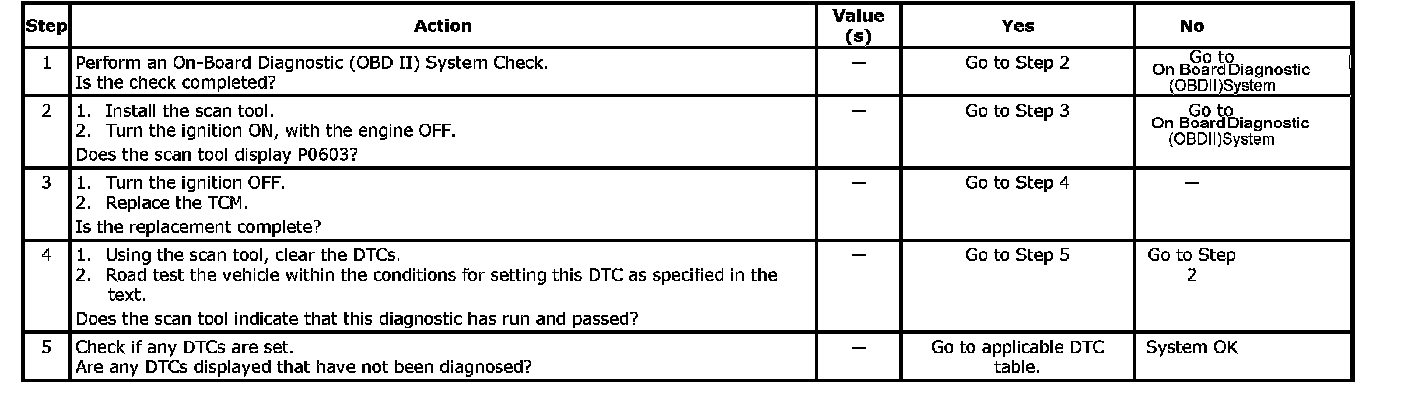 When DTC P0603 sets, the possible cause of fault could be TCM.