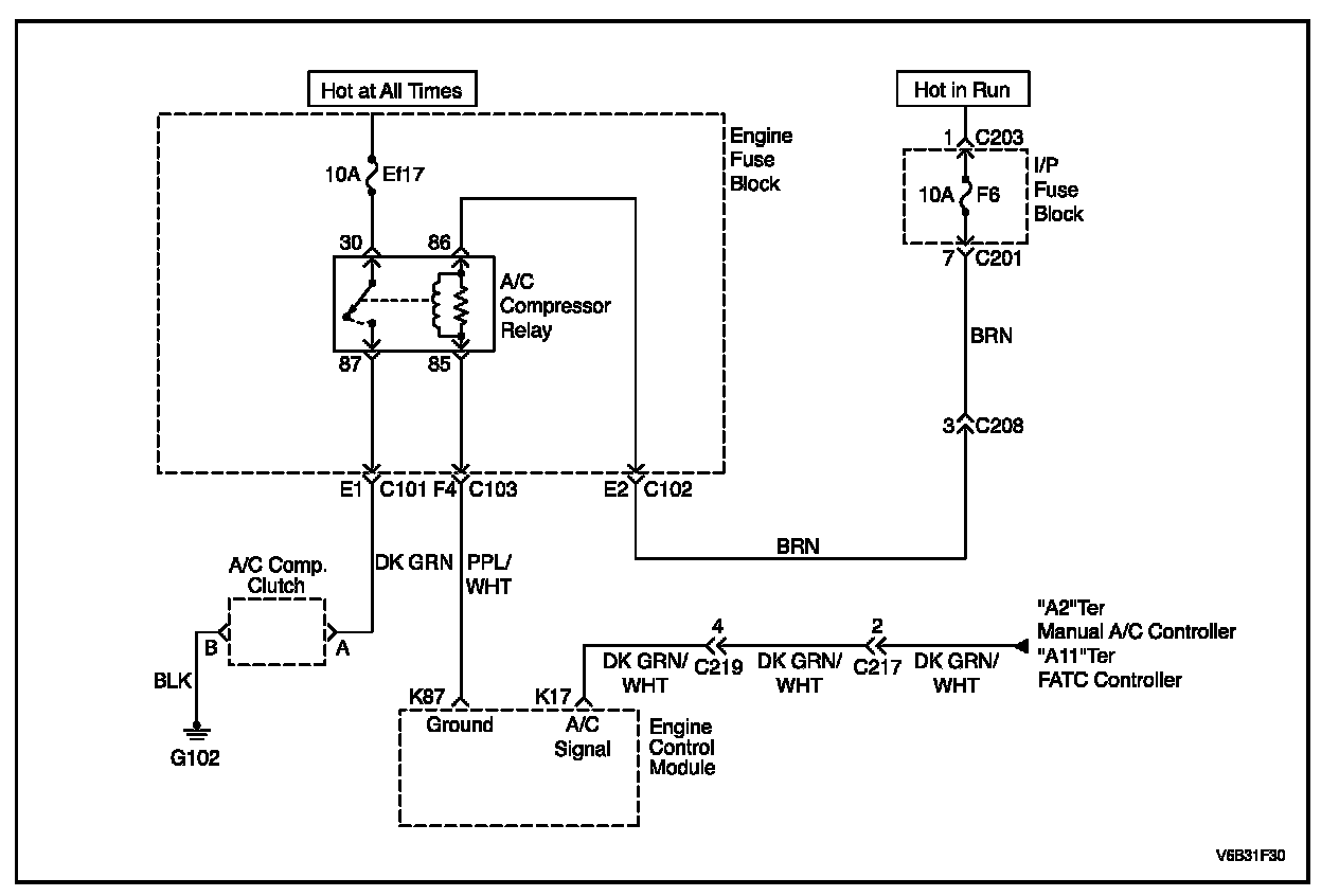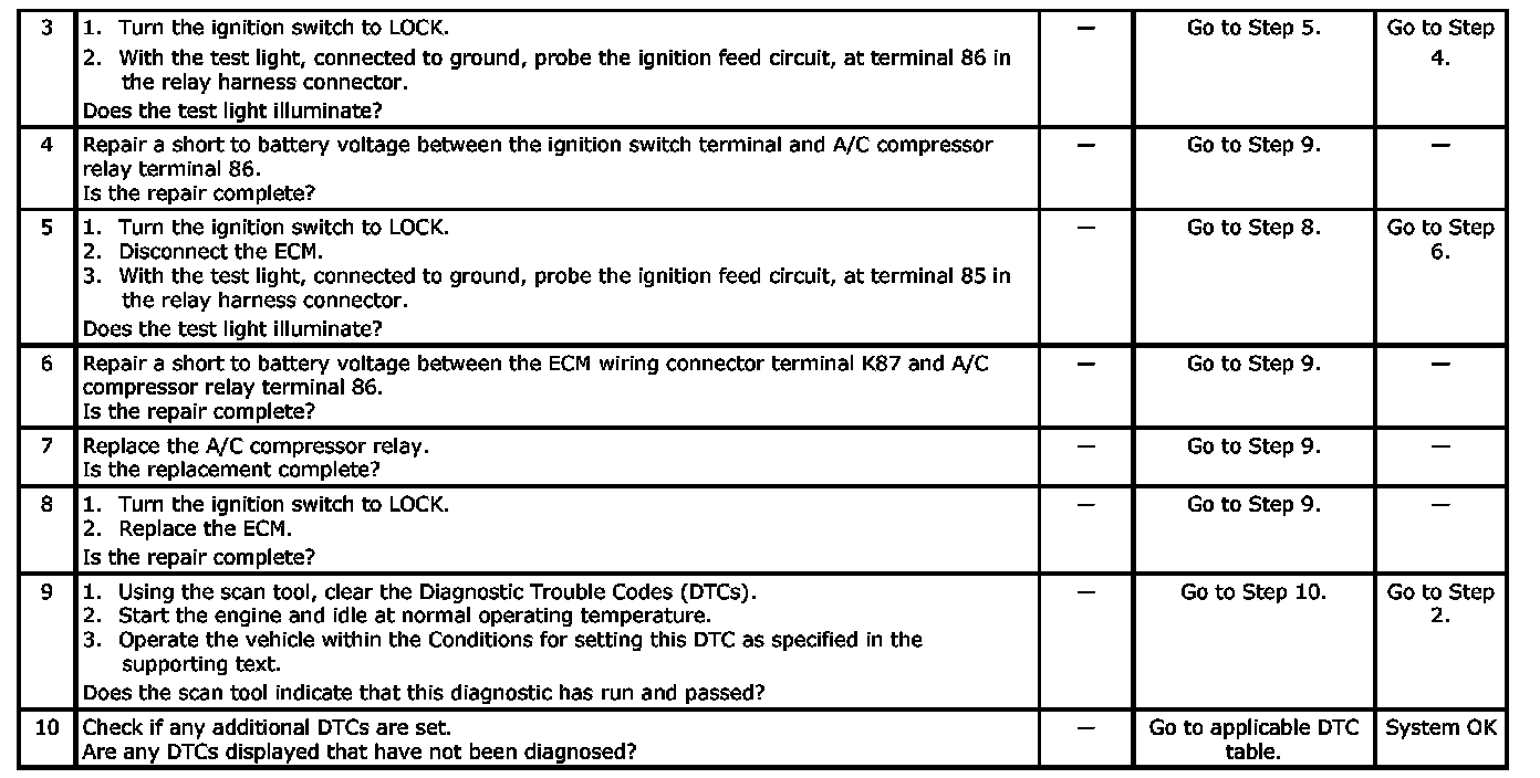 - An open or a short to ground condition in the A/C compressor relay circuit exists.